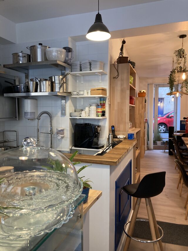 Le matin et l'après-midi, je vous attends pour déguster un café ou un thé accompagné de quelques douceurs sucrées. Le lieu est idéal pour travailler au calme. Le soir, passez prendre un plat à emporter.